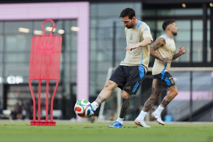 梅西已经回归阿根廷队,24直播网参加球队的练习 ,阿根廷队社媒晒出练习 照片。
