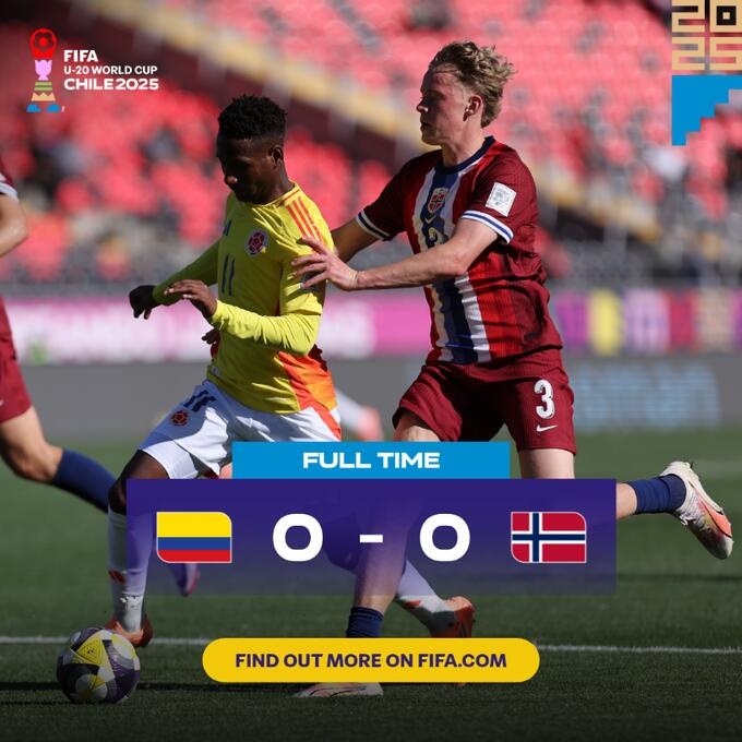 10月3日讯 世青赛F组第二轮,哥伦比亚U20以0-0闷平挪威U20。