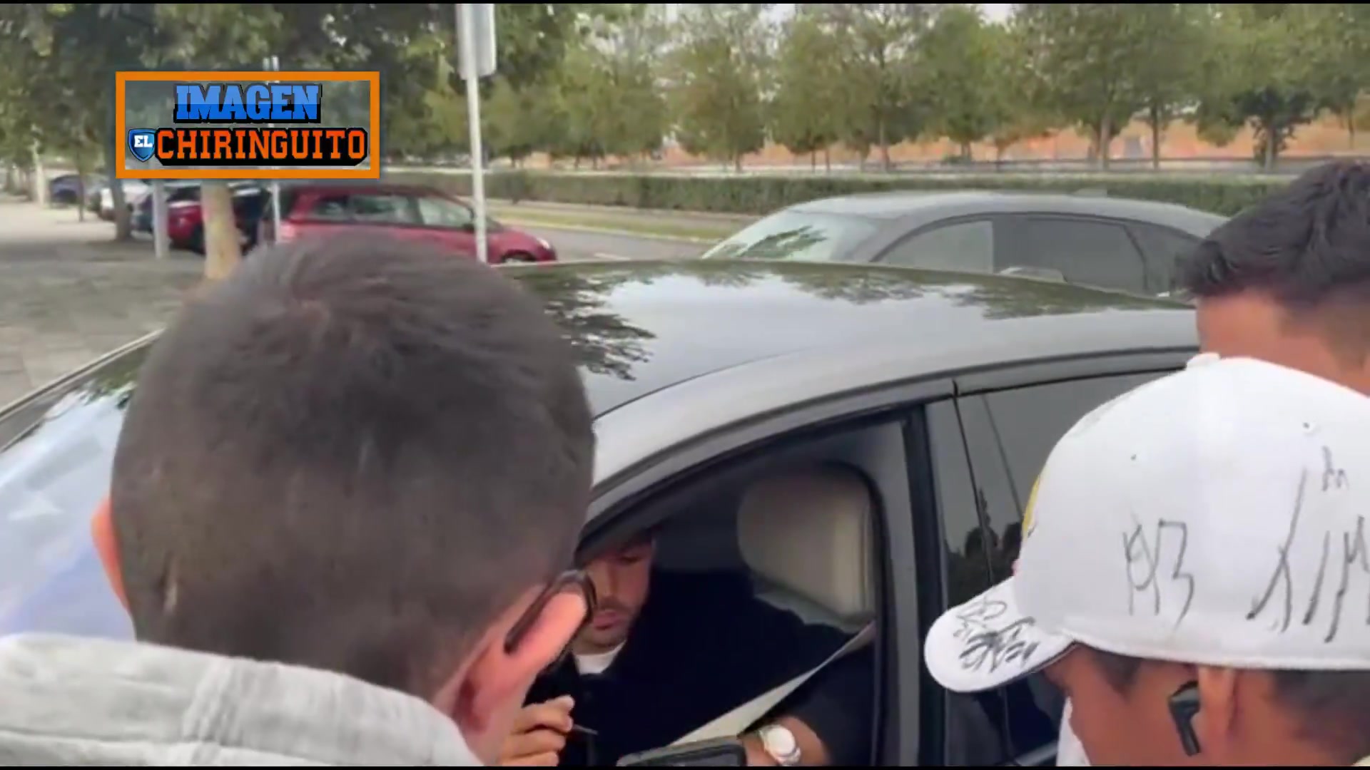 10月21日讯 六台记者Marcos De la Rocha晒出视频,皇马后场球员劳尔-阿森西奥抵达巴尔德贝巴斯练习 基地后为球迷签名。