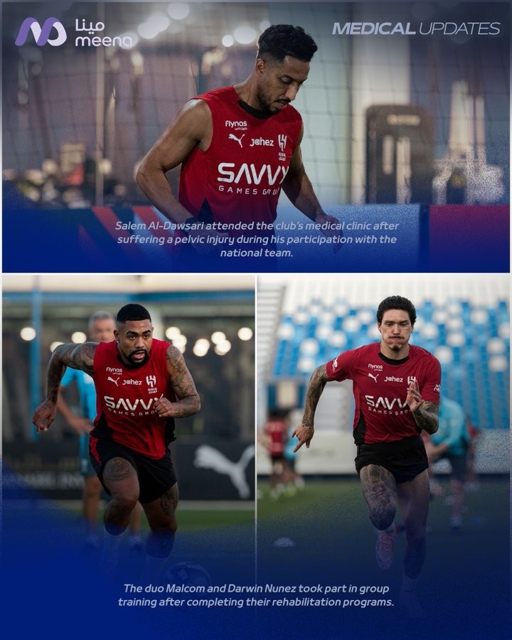 努涅斯和马尔科姆已经复健 ,于今日正式回归参加利雅得新月的合练