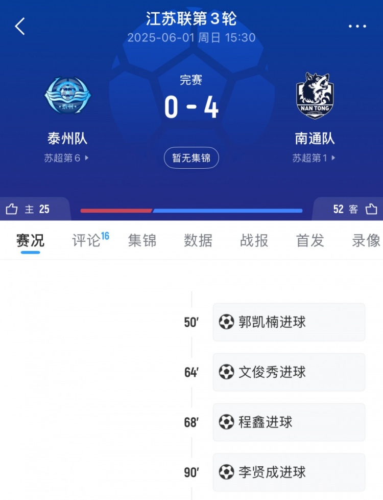 11月1日讯 首届苏超总决赛 ,泰州队罚球决胜 战胜南通队夺魁 ,他们职业联赛 阶段曾0-4不敌对手。
