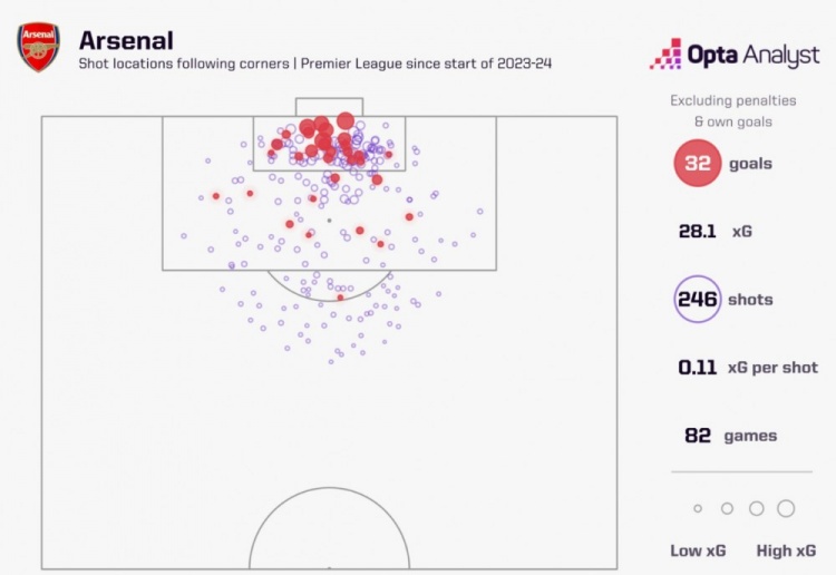 本赛季英超前6轮赛事 中,阿森纳已经通过底线球攻入6球超过任何其他球队,且几乎是除切尔西(5球)之外所有球队的两倍,这并不是什么新鲜事。阿森纳擅长利用底线球积分 ,这一点早已为人所知。2023-24赛季以来,他们在英超中通过底线球攻入36球,比任何其他球队至少多15球。只有切尔西(21球)、热刺(21球)、利物浦(20球)和埃弗顿(20球)达到了20球以上,而西汉姆联(19球)也只有阿森纳的一半左右。