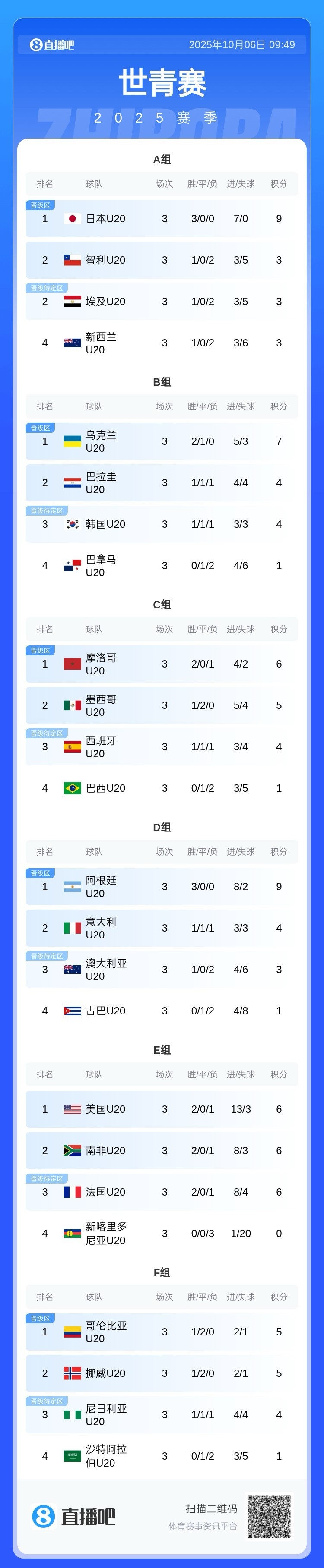 10月6日讯 世青赛结束小组赛争夺,亚足联球队方面,日韩晋级下一轮 16强,沙特、澳大利亚出局。