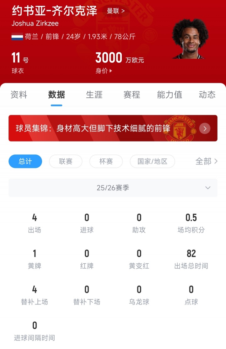 在今年夏窗曼联签下舍什科、姆贝莫、库尼亚三叉戟后,齐尔克泽的地位被彻底边缘化。本赛季曼联8场赛事 齐尔克泽均进入名单,但没有获得一次杆位机会,仅后备 登场4次,24直播网总计出场82分钟,没有取得得分 或助功 。