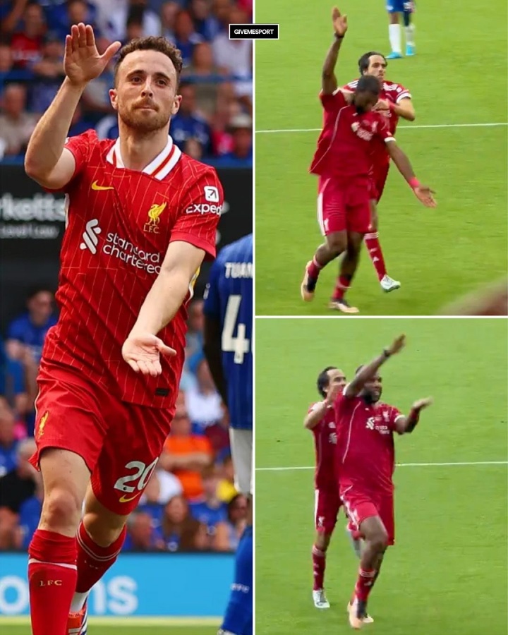 此前萨拉赫在英超首轮破门后也曾以同样的庆祝动作致敬若塔↓