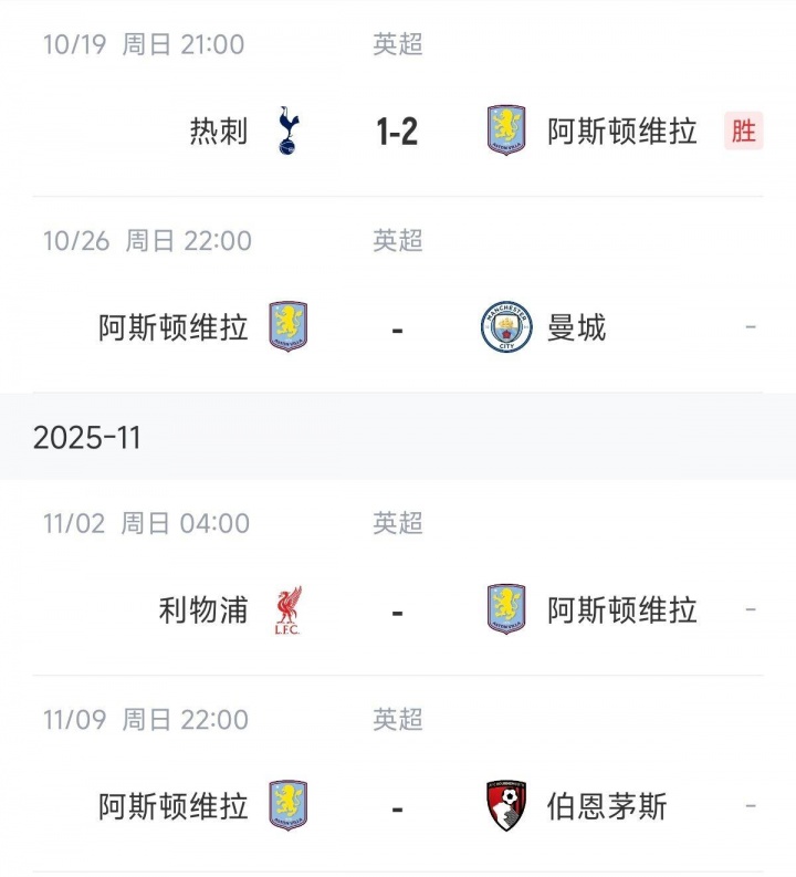 二三四名轮流上!维拉豪取五连胜竞技状态 炸裂,即将连战曼城红军樱桃