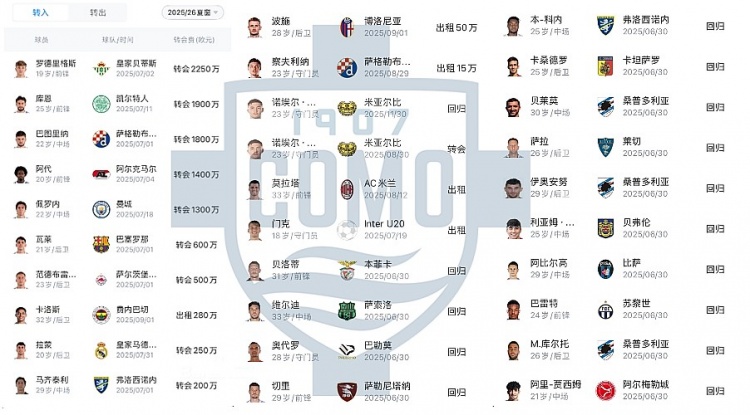 上赛季,科莫时隔多年后重返顶级职业联赛 舞台,他们投入9770万欧元引援,不仅早早完成了保级任务,最终的排名还停留在了意甲积分榜上半区(第10名)。小试牛刀便收获意外之喜,科莫在2025夏窗继续加大引援力度,他们破费1.0765亿欧元引进了16名球员,净支出(9400万欧元)高居意甲诸强首位。